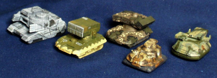 A variety of tanks: Ontos Heavy Tank, SRM Carrier, LRM Carrier, Condor Heavy Hover Tank and a Drillson Heavy Hover Tank